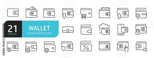 Set of line icons related to wallet, money, payment. Editable stroke. Outline icons collection. Vector illustration stock illustration