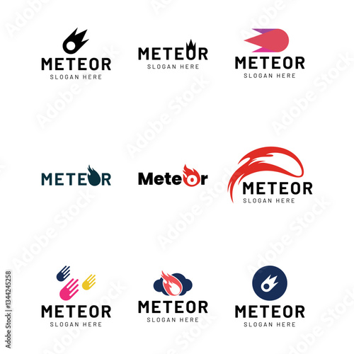 Set of Meteor logo template design isolated on white background.