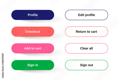 Set of Modern Gradient App, Website page or Game Buttons. Trendy gradient colors. Flat design.