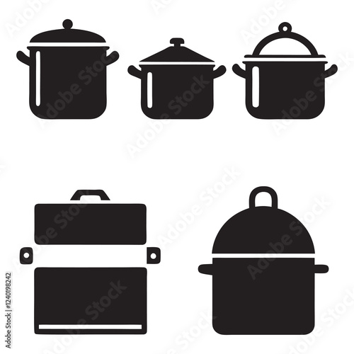 Set of multi cooker silhouette vector icon illustration, cooker on white background.