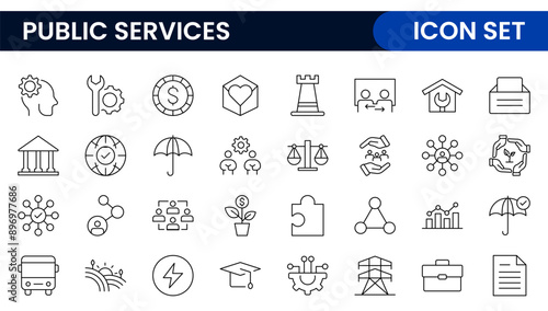 Set of outline Public Services icons. Minimalist thin linear web icon set. Line icons related to public utilities. Gas, electricity, water, heating.