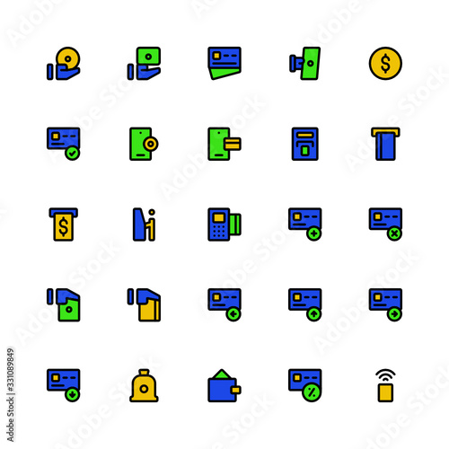 Set of Payment, wallet, debit, credit card filled style icon - vector