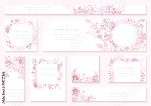 Set of Pink Floral Backgrounds With Text Space Isolated On A Pink Background, Vector Illustration.