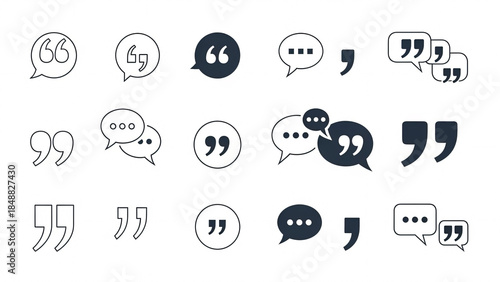 Set of quotation marks and speech bubble icons for communication and feedback