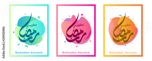 Set of ramadan kareem arabic calligraphy with liquid shape effect, Template for the design of a logo, flyer or presentation - Vector