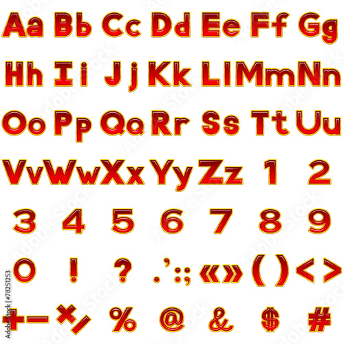 Set of red letters and numbers, buttons