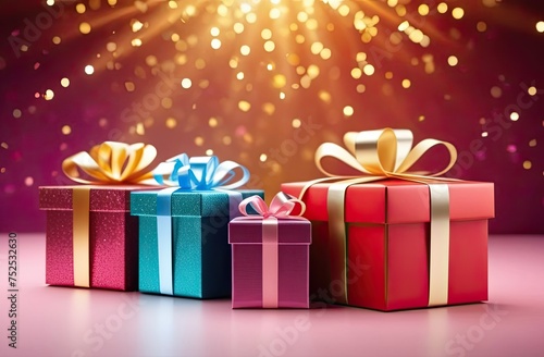 Set of some gift boxes. Happy Birthday concept. Christmas. Happy woman's day. Mothers Day. Front view.
