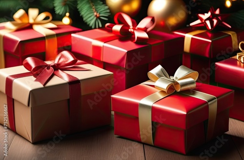Set of some gift boxes. Happy Birthday concept. Christmas. Happy woman's day. Mothers Day. Front view.