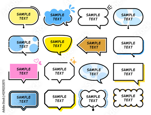 Set of speech bubble labels of various shapes. Special offer design elements, color colors, chat emblems, black captions