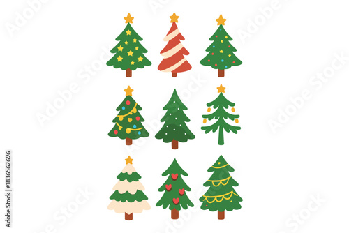 Set of Stylized Christmas Trees with Festive Decorations