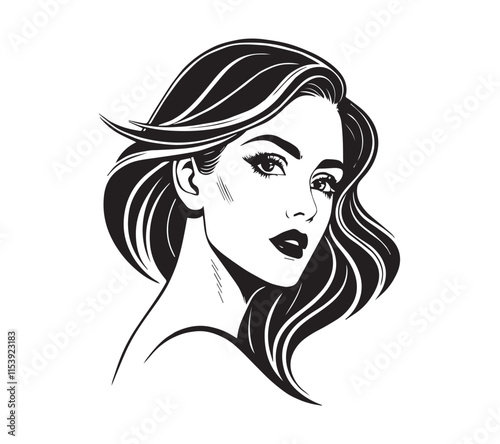 Set of stylized woman faces. Modern single line art. Woman beauty fashion concept, minimalistic style Black and white