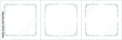 Set of three elegant green vegetal ornamental frame, decorative border, corners for greeting cards, banners, business cards, invitations, menus. Isolated vector illustration