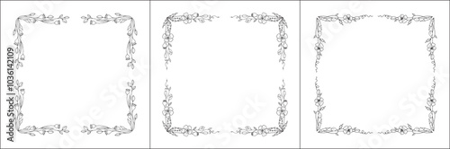 Set of three vector decorative frames, vegetal ornamental frame with flowers, decorative border, corners. Isolated vector illustration.