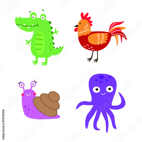 set of various animal illustrations. the animal drawing collection in funny cartoon style. kids friendly illustration for educational or design element decoration.
