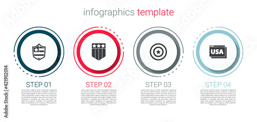 Set Shield with stars, , American shield and USA on browser. Business infographic template. Vector