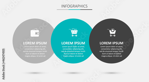 Set Shopping cart and food, Wallet and Add to. Business infographic template. Vector