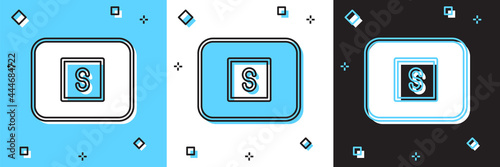 Set Stop media button icon isolated on blue and white, black background. Vector