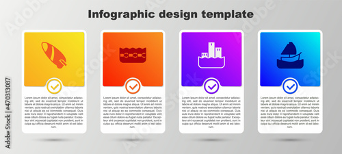 Set Surfboard, Swimming pool, Winner podium and Yacht sailboat. Business infographic template. Vector
