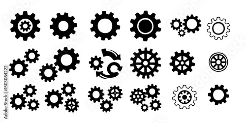 Settings Icon Vector Set – Gear and Tool Symbols for Interface and Configuration