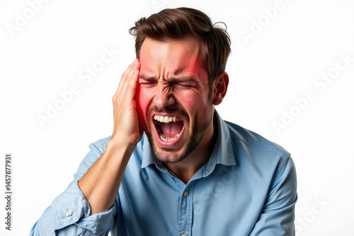 Severe toothache, throbbing pain, isolated white background, extraction, sensitive, pressure