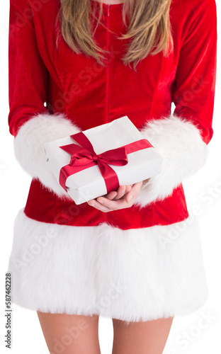 Sexy santa girl holding gift