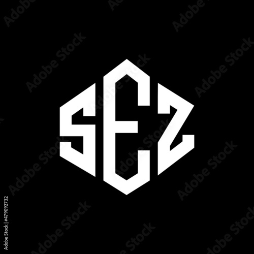 SEZ letter logo design with polygon shape. SEZ polygon and cube shape logo design. SEZ hexagon vector logo template white and black colors. SEZ monogram, business and real estate logo.