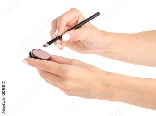 Shadows for the eyelids in hand on white background isolation
