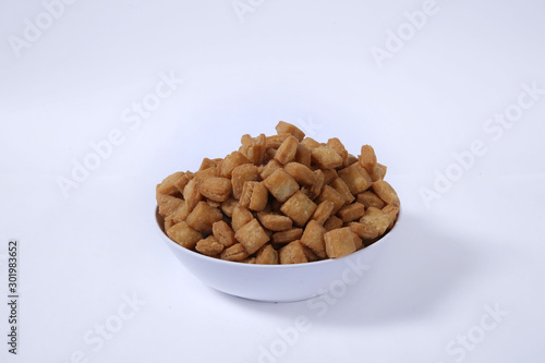 Shakkar pare Also Know as Shakkarpare, Shakarpare, Shakarpali, Shakkar Para, Sakarpara or Shankarpalli or shankar pale is a Snack Typically Made in India During Diwali - Image
