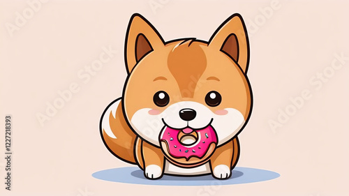 Shiba inu and donut, cute dog, funny animal