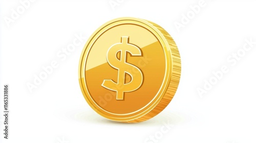 Shiny Gold Dollar Coin Representing Wealth, Prosperity, Finance, and Economic Growth Isolated on a Clean White Background for Financial Illustrations