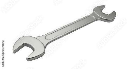 Shiny metal combination wrench tool for mechanical repairs isolated on transparent background