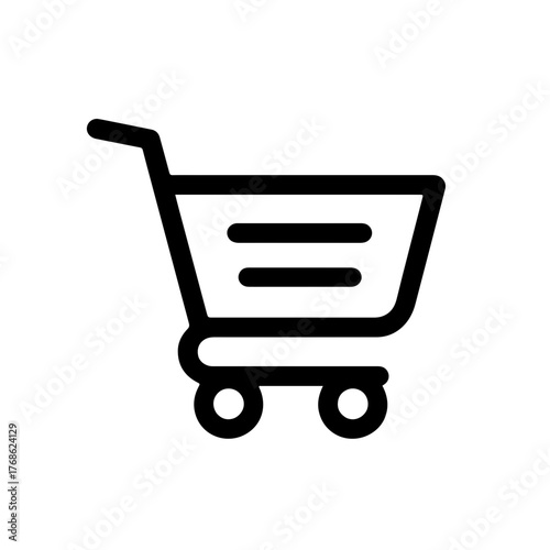 Shopping Cart Icon for Online Retail: Simple line icon of a shopping cart symbolizing e-commerce, retail stores, and online shopping.