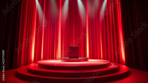 Show light, Stage Podium Scene with for Award Ceremony on red Background. Vector illustration