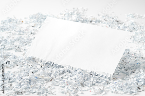 Shredded paper on white background close up