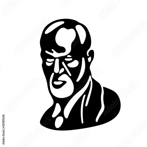 Sigmund Freud - the father of psychoanalysis, portrait. Stencil in black. Ego, superego, libodo, sexuality. Vector illustration.