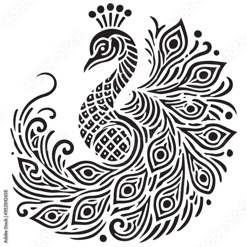 Silhouette Batik Pattern Unique Creative Art On Bird With Tree Isolated In White Background Vector 36