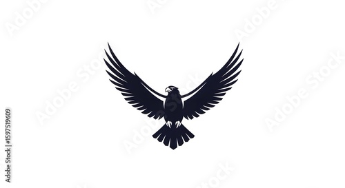 Silhouette Hawk in Flight Black Bird Flying with Wings Spread on White Background