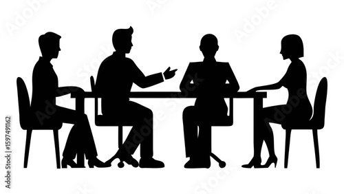 Silhouette Meeting: A stylized silhouette captures a corporate meeting, showing diverse figures engaged in conversation. It showcases the essence of corporate interaction and collaboration.