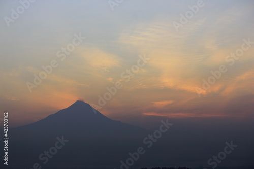 Silhouette Mount Merapi Volcanoes most active before Sunrise