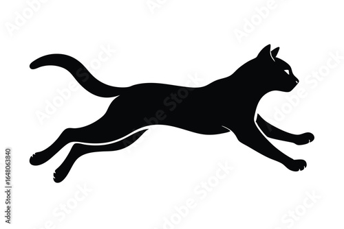 Silhouette of a Black Cat Leaping, MidAir with Tail Curled Upward