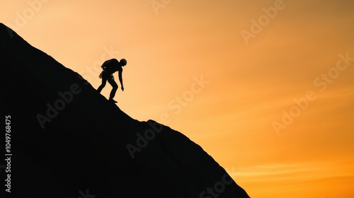 Silhouette of a climber ascending a steep slope against a vibrant sunset, showcasing determination and adventure in nature.