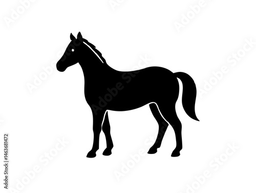"Silhouette of a Horse Standing in Profile on White Background"