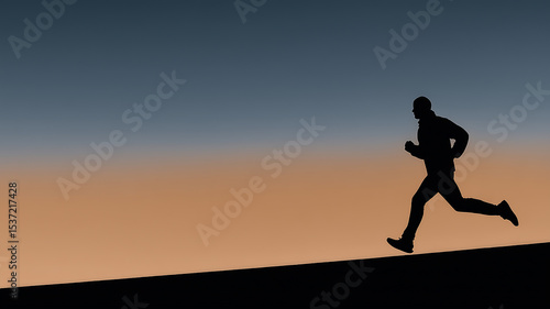 Silhouette of a man running under an orange and blue sky