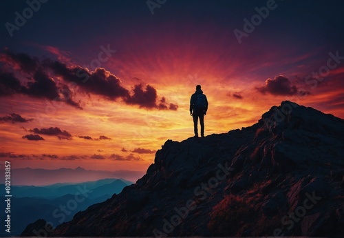 silhouette of a person on a mountain top