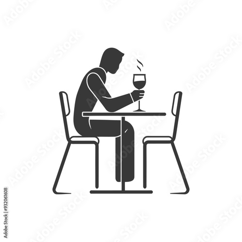 Silhouette of a Person Sitting at a Table with a Glass of Wine