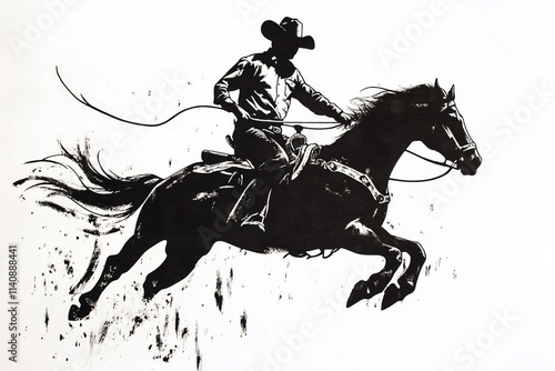"Silhouette of a Rodeo Cowboy Riding a Bucking Horse"