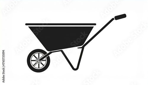 Silhouette of a single-wheeled garden cart, commonly known as a wheelbarrow, used for transporting materials in construction and gardening