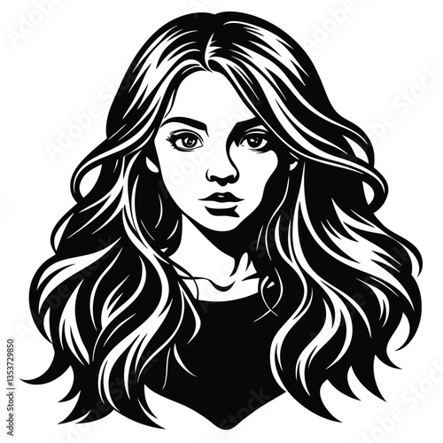 Silhouette of a woman with long flowing hair, with isolated background