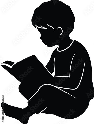 Silhouette of a young boy reading a book isolated on transparent background silhouette