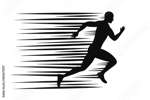 Silhouette of an African American Man Running Isolated on White Background, Sports Design